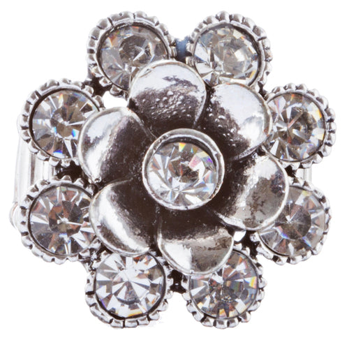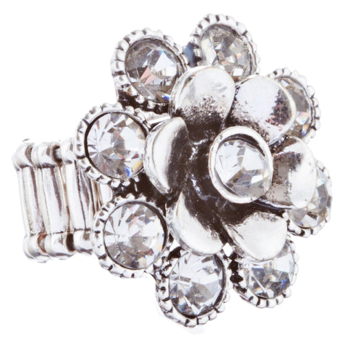 Beautiful Floral Design Crystal Rhinestones Fashion Stretch Ring R231 Silver