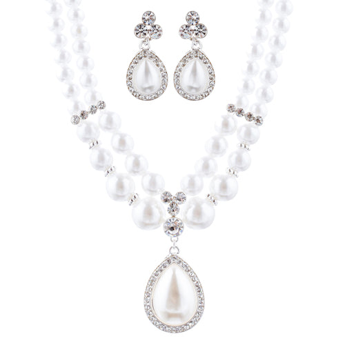 Envision elegance with our pearl teardrop bridal jewelry set, a harmonious blend of lustrous pearls and sparkling rhinestones. The captivating teardrop pendant and matching earrings are the epitome of wedding day luxury, designed to add a graceful and refined look to your bridal attire. This set promises to imbue your special day with classic charm and a hint of shimmer.